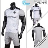 Bộ quần áo đá banh MU màu xám thun mè CV - Trắng