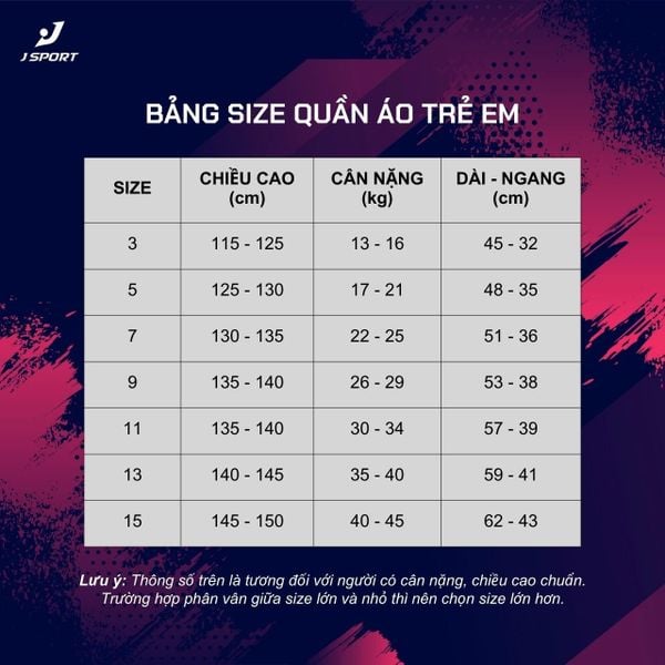 Form áo: Phù hợp với các thể trạng người Việt, có bảng size cho các bé ở phía dưới